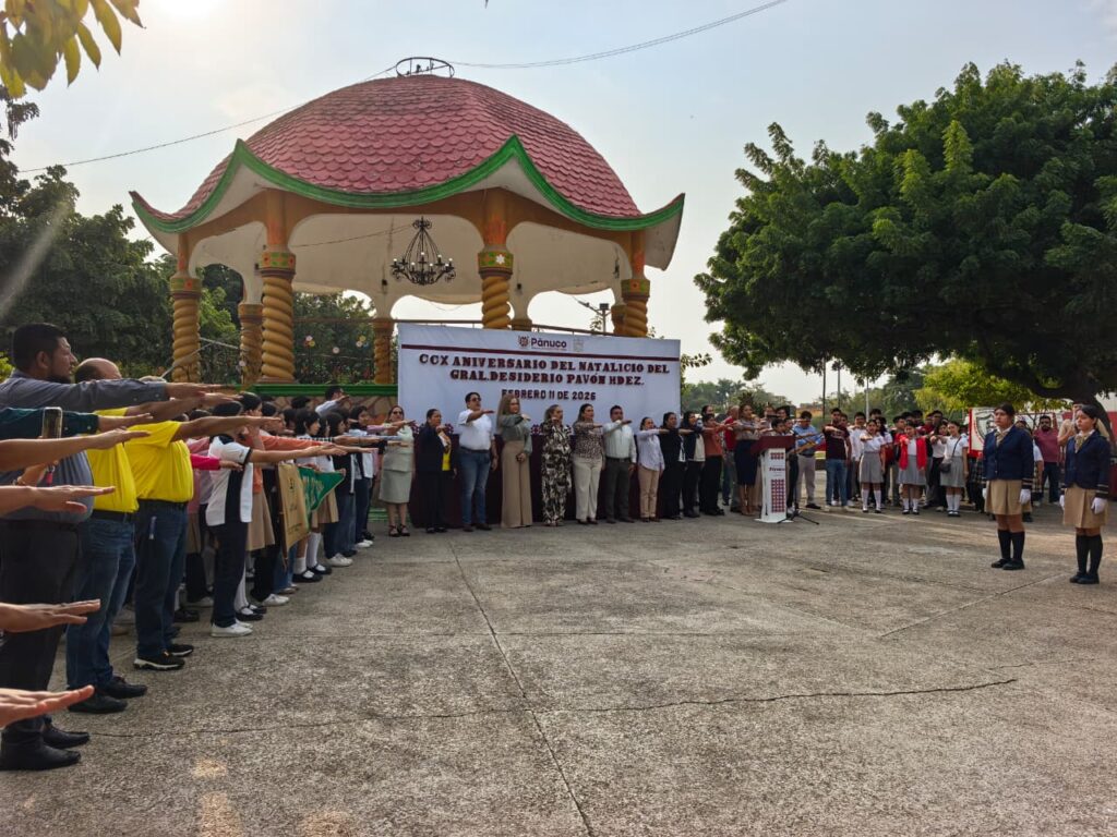 Pánuco, Veracruz a 11 de febrero de 2026. – El gobierno municipal que encabeza la alcaldesa Mayra Anel Delgado Castillo en coordinación con la secundaria oficial, llevaron a cabo el acto cívico por el 210 aniversario del natalicio del General Desiderio Pavón.